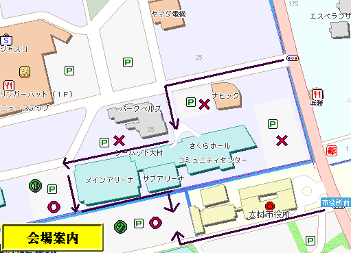 また、マイクロバスや大型バスもAを利用して下さい。* 上記駐車場に関しての注意事項を守って頂かないと来年以降の大会開催(利用)ができなくなります。
