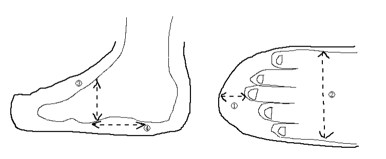 @ つま先のゆとりは7〜10mm(ただ、つま先でボールを蹴るサッカーの場合には5mm以内)
