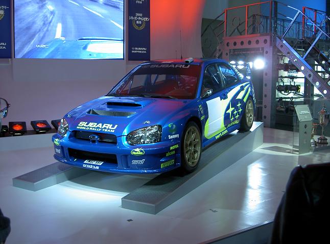 | こちらは1月に発表されたIMPREZAのWA-CAR(プロトタイプ)です。サイドに描かれたS.W.R.T(SUBARU WORLD RALLY TEAM)のロゴマークが特徴的。IMPREZAの究極の姿と言っても過言ではないでしょう。1度でいいから、こんな車を運転してみたいですね。 |