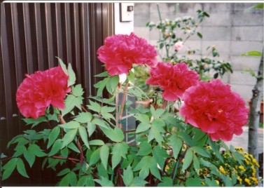 「四季折々」の牡丹の芽の半生です 大輪の花を咲かせました