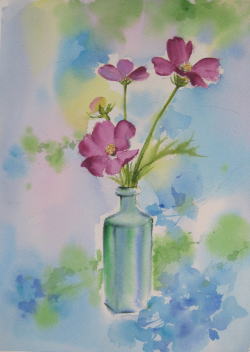 短命だったコスモスを一杯描きました。コスモスの多い今回のアトリエです。