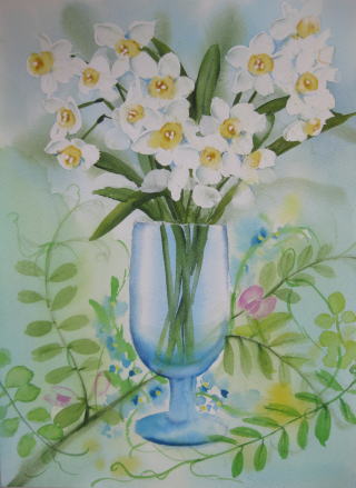 1973年、結婚を機に職場を離れ、子育ての傍ら独学で水彩画に取り組む