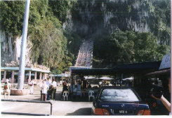 夜、涼しくなると屋台がでて午前2時でも大にぎわいだった市内見学 1月8日 18階のスイートルーム専用のレストランに向かうも手 違いからか拒否され、2階のレストランで食事。このツアー手違いが多すぎる。 王宮の前で激しい人だかり。門の前に真っ赤な服を着て旗を持ち馬に乗った衛兵 が9騎。門番も着飾っている。そこを目当てに観光客が集まっている。イギリス の風景だな。少し離れた所には警官隊。白バイはHONDA−CBX750が6台。 国家記念碑に行く。1949年から61年までの12年間の独立戦争での戦死者 を悼む為にたてた碑である。そんな戦争があったのか。庭園には熱帯の花が咲い ていた。 国立モスクへ向かう。今日はマレーのお正月。正装した男女が行き交っ ていた。旅行の予定ではモスクの中まで見学できる予定であったが、これも駄目 になった。もう一組の3人ずれの一人はかなり不平を言っていた。 モスクの建物の壁に珍しく自動販売機が設置されているのが見えた。ここなら誰 もいたずらはしないのだろうか。 独立広場で見学。昨夜電飾で光っていた旧マラヤ連邦ビルの目の前であった。色 々な服装の人がいるので、マレー人をカメラに納めようとしたが、どうもカメラ を向けられない。難しいものだ。 ヒンズー教寺院 モスクの内部を見学できない代わりにと言うことで、市街の 13キロにあるヒンズー教の寺院のある鍾乳洞に向かい到着。 断崖を300段近い階段を上ったところに洞窟があった。高さは20mはありそ う。その洞窟をさらに奥に行くと広場があり、そこにその寺院があった。 寺院が建っている洞窟のなかの広場の天井は抜けていて空が見える。そうだこの 光景、手塚治虫の漫画の「火の鳥」の光景だ。漫画ではここに閉じこめられた人 間が外にでられないという話だ。なんだか仏教の原風景のような感じ。 戻って下の店で椰子の実のジュースを注文。男が椰子の実をまな板の上に載せて、 薪割りのような包丁を数回、椰子の実にたたきつける。中からジュースがこぼれ 出る。十分に熟した椰子の実のジュースは実に旨い。 カミさんはツバメの巣ジュースを注文。これも旨い。他の店の男がやってきてツ バメの巣を売りつけた。かなり安い。でも買いたい気持ちを抑えて値引き交渉。 もう要らないよ、といったところで、値が下がり、購入。 その次に調子に乗って元気の出る効能を持つ樹皮も購入。