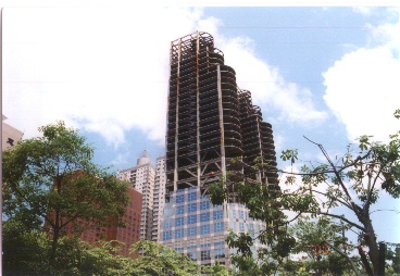建設途中のビルが放置されている 。20階ぐらいあるのだろうか上