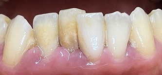 歯石は下の歯の裏側の歯の根元につきやすいのですが、口呼吸があるとそれに加えて唇側の歯の根本にもつきやすくなります。