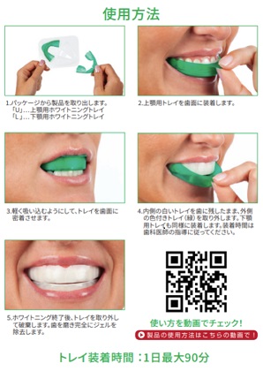 既成トレーにホワイトニングジェルが充填されており、口腔内の体温によって歯列に合った形に変形します。