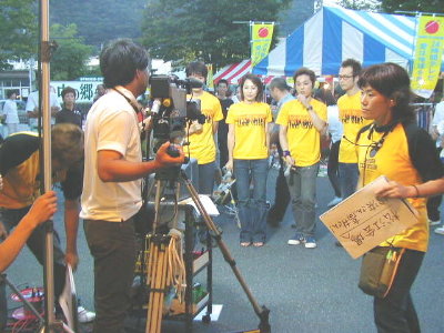 | 表の広場ではチャリティーバザーや、TV中継で夕方頃からとても賑やかでした。 スタッフの方々は24時間テレビの定番となった黄色いTシャツ姿で いつもはテレビの中でしか観たことのない美人の女性キャスターも拝見しました♪ |