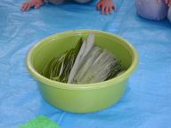 まずはshin_pikaが挑戦。 笹の葉を2枚重ねて・・・ |