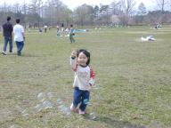お腹がふくれたあとyupoはおじいちゃんに シャボン玉を買ってもらい大はしゃぎ。 |