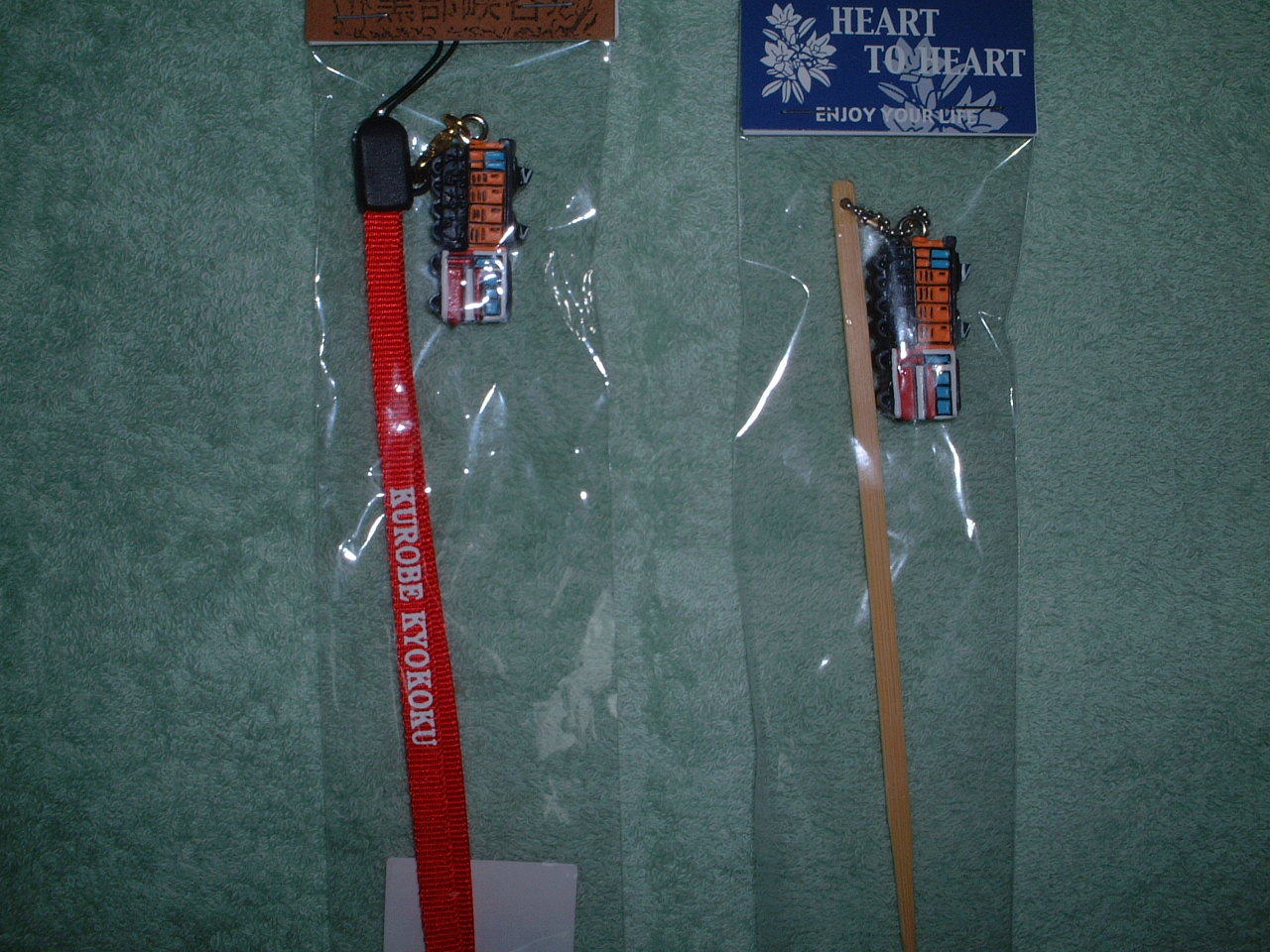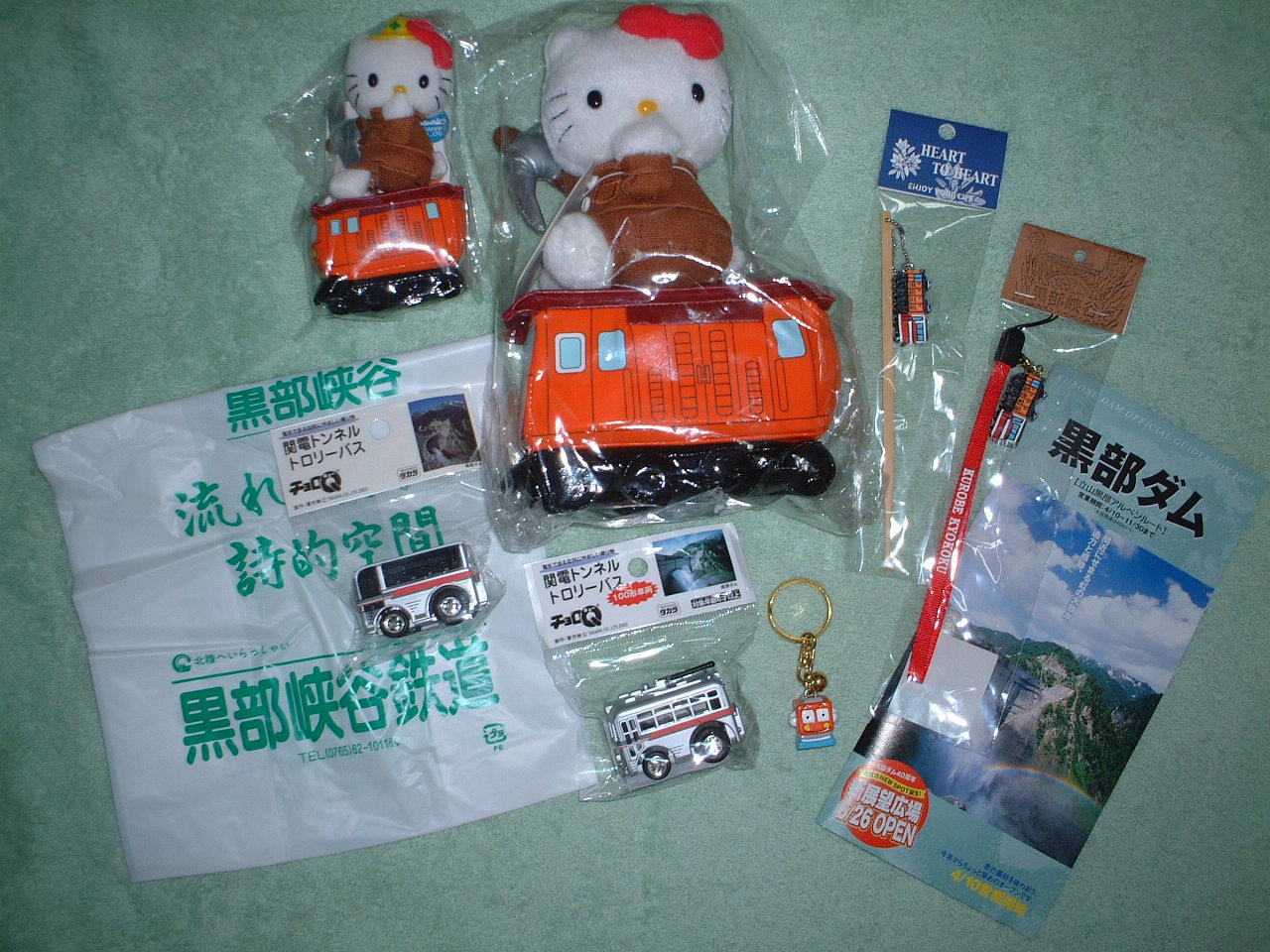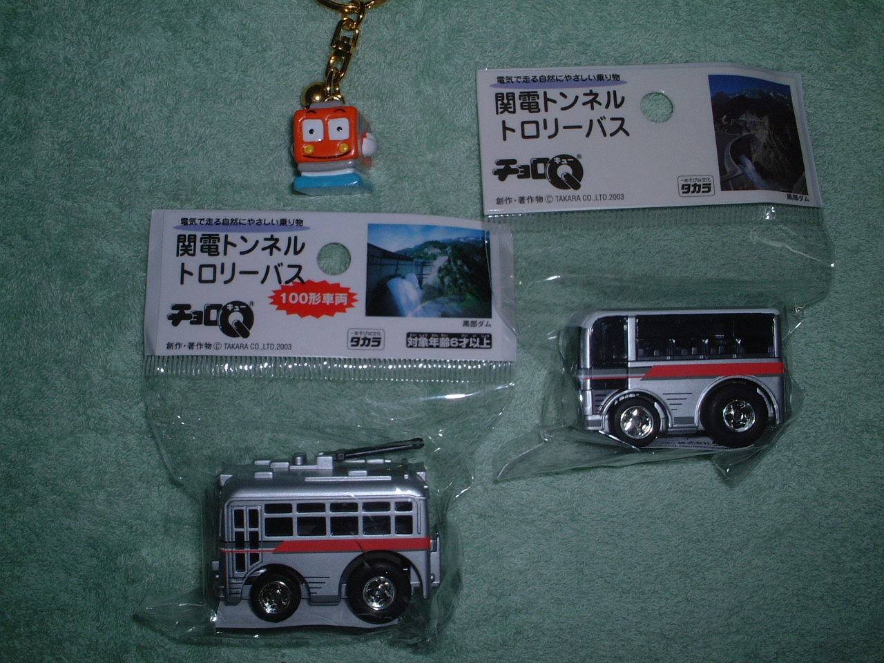 トロリーバスのチョロQとキーホルダー 携帯ストラップと耳かき