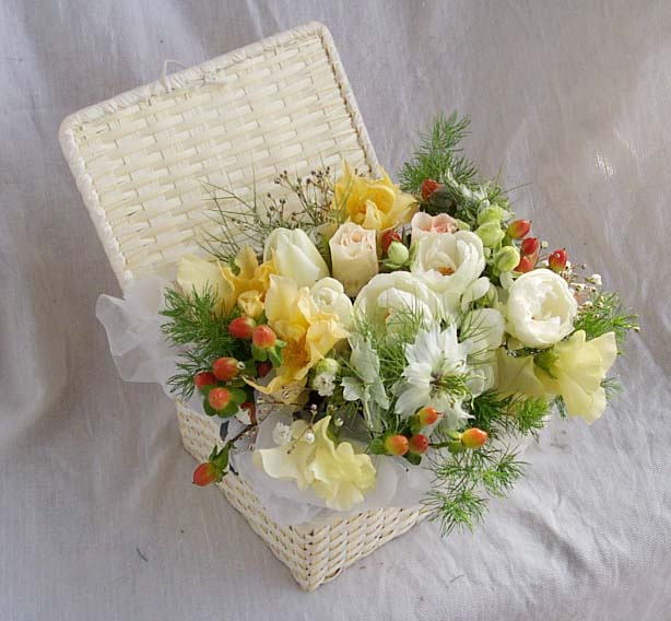プレゼントは、上の写真の通りニット、アレンジ花、メッセージです。