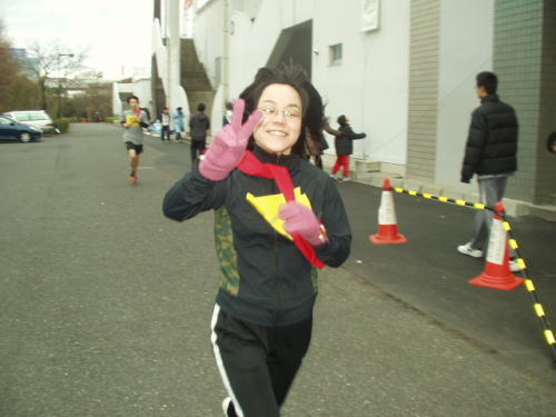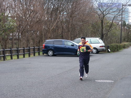 | 走る前の松島さん。余裕顔(^_^)v | 笑顔で走る渡辺明洋さん。 |