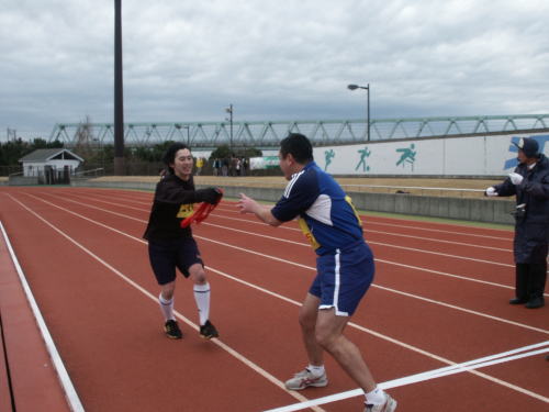 | すばらしい走りを見せた宮内さん。 | アンカー対決へ。 |