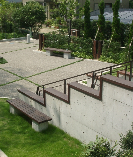 あたかも公園というような所はやめ、土手や周囲環境、そして塚(墓)を自然に認識して楽しめるようなデザインにしました。