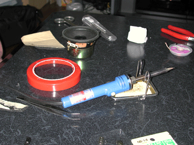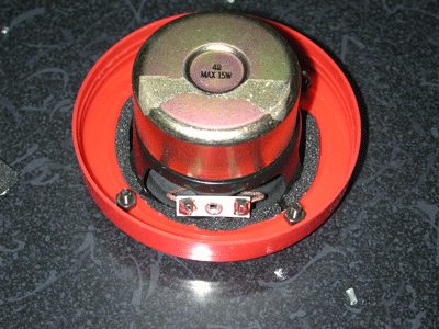 蓋に穴を開けて加工中です。 ユニットのマグネットが結構大きいのがビックリです。 |