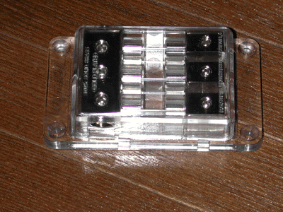 | みっちゃんオフ会に向けて電源分岐のヒューズBOXを 交換します。テクニカのMAXI3連ヒューズブロックを用意。 |