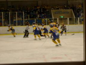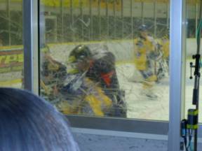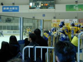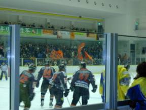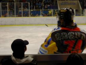こんな間近で試合を見られるのは アイスホッケーならでは |