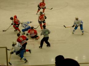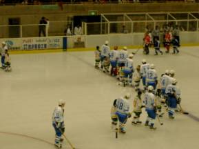 リンクの雰囲気は、去年と同じ・・・しかし、人が少ないな〜〜〜空席が多い一体どうしたのだろう?これではホッケーの未来が危ういですよ。