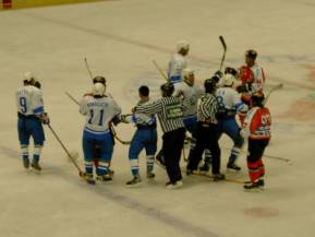 第二ピリオドは、荒れた展開に・・・当たりが激しく、ファールが多くなってきました。