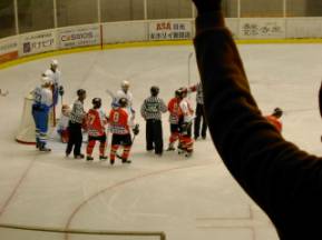 コクドが追加点を上げ逃げ切りに入ります。ペナルティーボックスも忙しくなってきました。