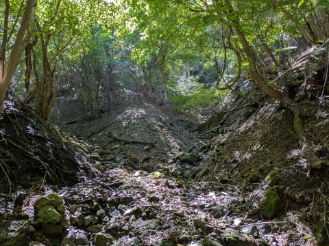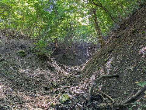 この滝の上で、水がいったん伏流となり、枯れました。