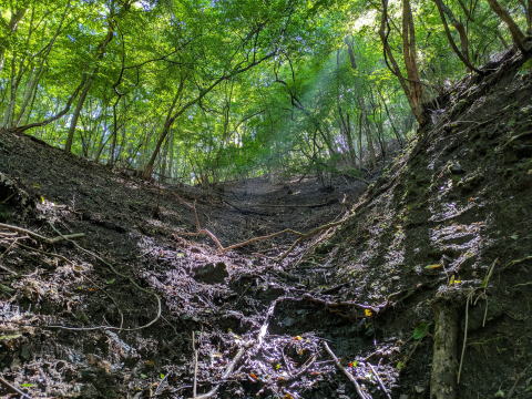 11:56 最後のツメ(上がったところが登山道) | ![]() |