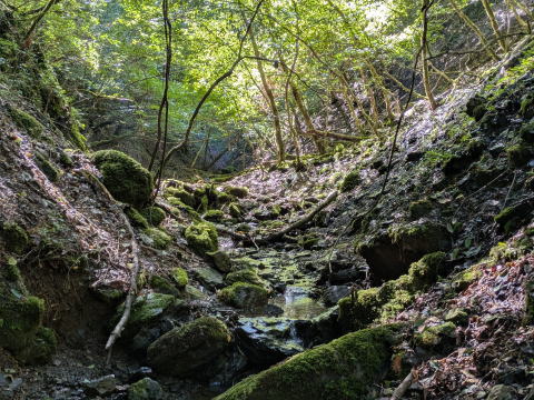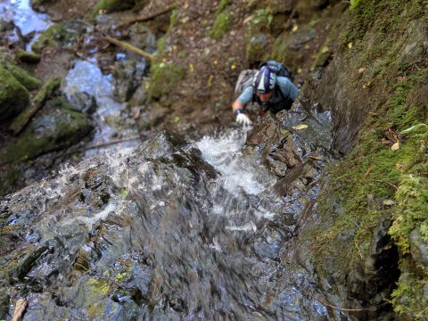 標高555mにて、水流が戻り、最後のツメまで枯れることはありませんでした。