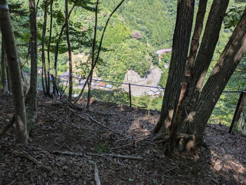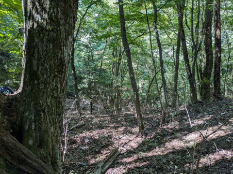 連日猛暑ですが、沢にいるときはそれほど暑くなく、登山道に合流してからも上の方は風があり、それほど暑くなかった。半分くらい下りたところから、さすがに暑く、長袖のボタンを開けたが、それも短い時間だった。下山は基本的に樹林帯の中で、木々に囲まれているので、眺めの良い場所はほとんどない(人家がみえてきたの写真辺りが遠景が少し見える)、というのも暑くない理由の一つかもしれません。