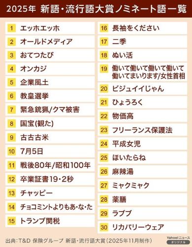 25/11/26 2025年新語・流行語大賞のノミネート30語