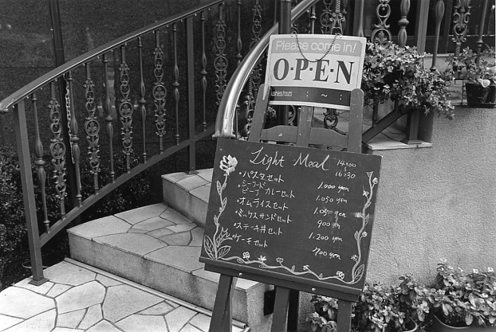 駅から学校に行く歩道沿いのレストラン