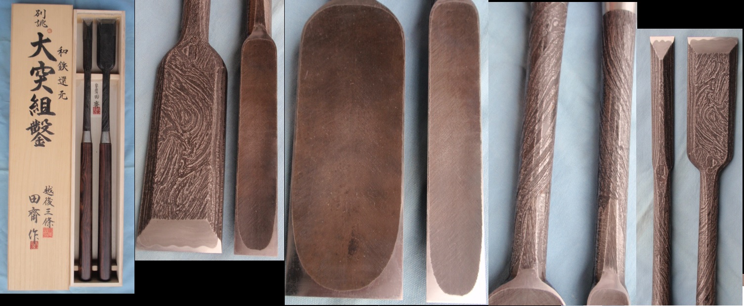 *田中一郎作 *宝龍斎 長弘(廃業) *面取薄鑿8本組(黒刃) *4,5,6,8分、寸、寸2、寸4、寸6 *白紙1号鋼 *全長尺2 柄6寸5分 *10年以上前に造られたもので首は細 く出来ています。 *商品番号NO.TNO51 *白樫柄 *売り切れました *入荷不可 *他、面取薄鑿8本組 (4分、寸スウェーデン鋼)売り切れ |